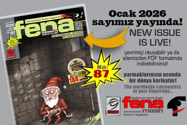 Yayın yönetmenliğini Aziz YAVUZDOĞAN‘ın yaptığı, dünyaca ünlü karikatürcü ve yazarların gönüllü katılımlarıyla yayınlanan “fenamizah e-dergi”nin bu 87. sayısında 45 farklı ülkeden 136 karikatürcü ve yazar yer alıyor.