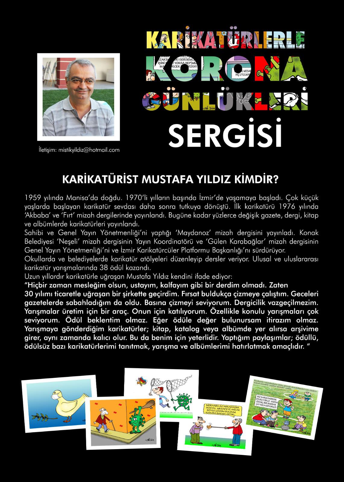 İzmirli çizer Mustafa YILDIZ güncel karikatürlerini çizdiği İz Gazete ve Wesida Medya Grubu dergilerinde yayınlanan karikatürlerini bir sergide topladı. 25 karikatürden oluşan sergiyi farklı yer ve mekanlarda izleyicilerle buluşturuyor.