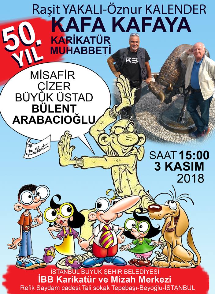 “Kafa Kafaya Muhabbet” etkinliğinde karikatürümüzün iki usta kalemi Raşit Yakalı ve Öznur Kalender‘in bu ayki söyleşileri Bülent Arabacıoğlu‘yla.